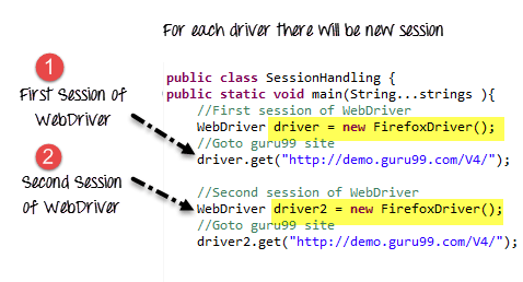 Code Example: Here two different sessions will be generated for two different WebDriver.