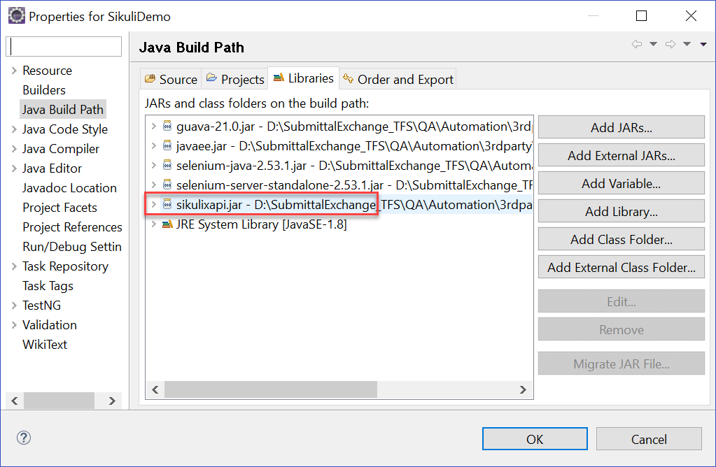 Step 2) Create a new JAVA project in Eclipse and add the JAR file to build path, along with selenium jar files using Right Click on the project -> Build Path -> Configure Build Path
