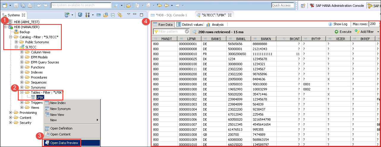 Step 3) Check Data in the table (LFBK) by Data Preview from Schema "SLTECC" as below -.