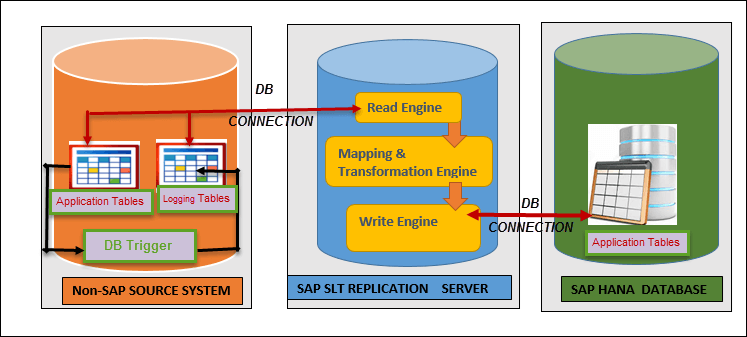 Architecture Overview of SAP SLT server with SAP / Non-SAP System is as below-