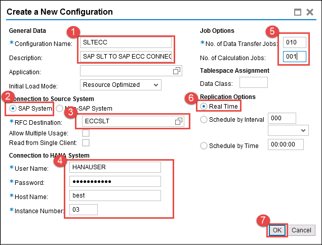 First we need to configure SAP SLT replication server for connection between SAP Source and SAP HANA database. T-code, LTR is used for creating a connection between SAP Source and SAP SLT.