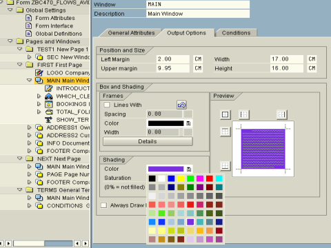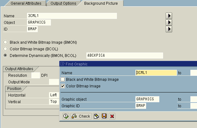 For background picture and graphics you can pick up either black and white or color bitmap images and are stored in the form of standard texts. You may take a detour from the smartform screen and open Form Graphics screen. Transaction code: Se78