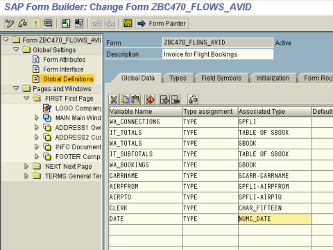 Global Data Declarations : The Data defined here can be used throughout the smartform for coding purposes.