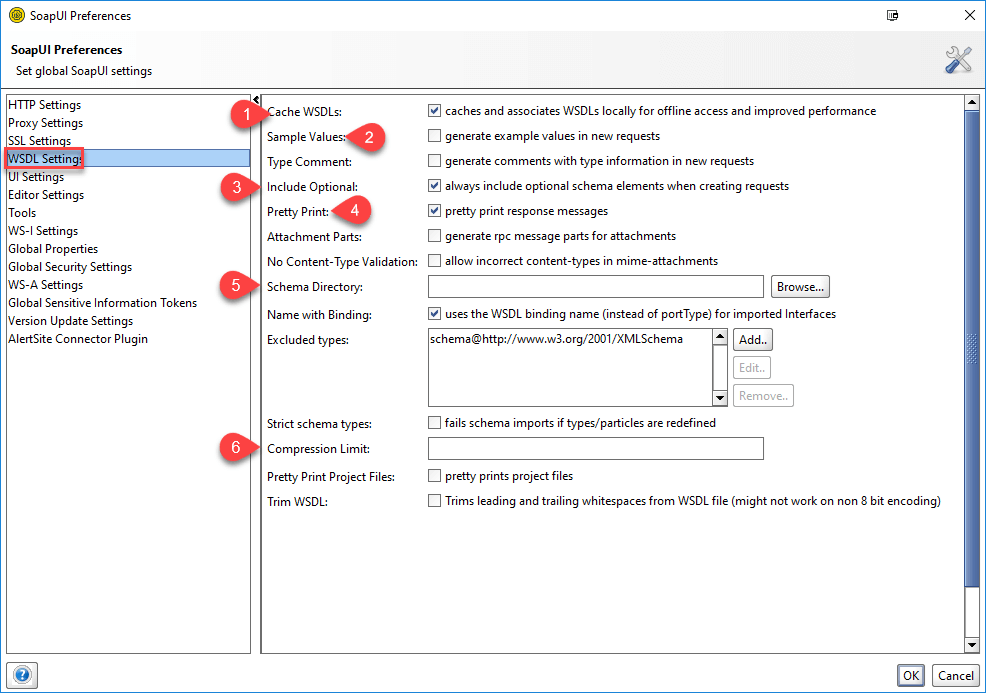 - Allows user to specify a directory containing schema (.xsd) files while validating WSDL requests. Upon changing the contents of this directory SOAP UI requires a restart.