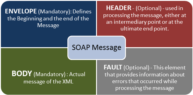 A SOAP message is an ordinary XML document containing the following elements. Message can be either a request message or a response message.