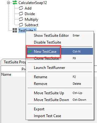 Step 1: Within a test suite, we can create multiple tests by performing right click on the 'test suite' and choosing 'New TestCase'.