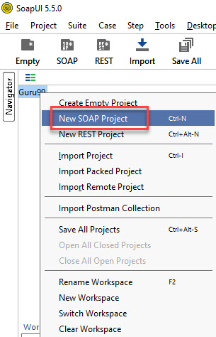 Step 1: Now, depending upon the project, we need to import SOAP/REST protocol. We will create a new SOAP Project.