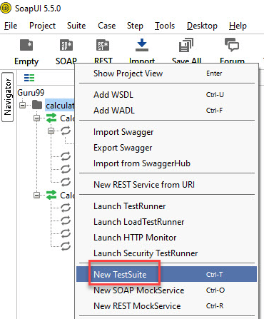 Step 1: Within the project, testers can create a test suite by performing a right-click on the root of the project.
