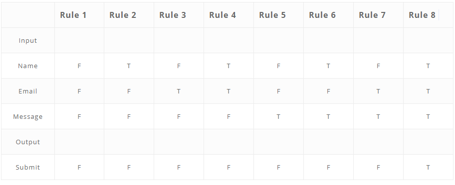 For every function, you need to create a table and list down all types of combinations of inputs and its respective outputs. This helps to identify a condition that is overlooked by the tester.