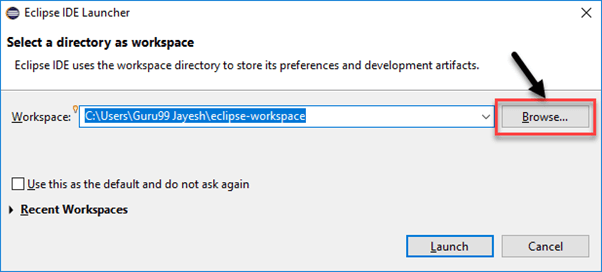 Step 8) Click on the "Browse" button to select the workspace directory.