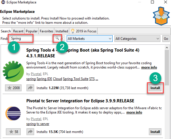 Step 11) Searching and installing Spring plugin.