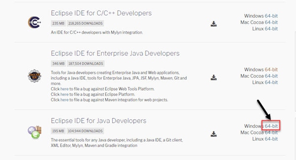 Step 4) Go to Eclipse IDE for Java Developers and click on "64-bit" link.