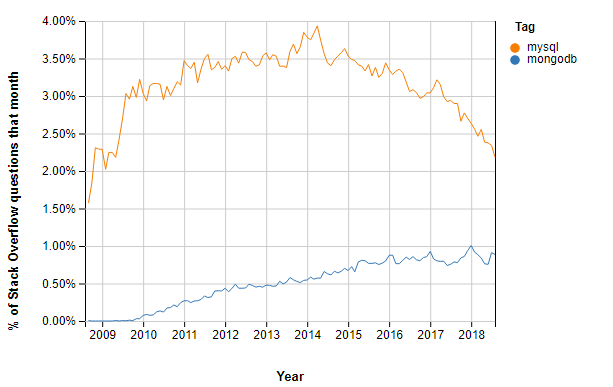The below image shows Stackoverflow questions for SQL vs NoSQL databases: