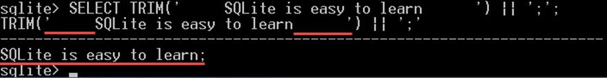 SELECT TRIM(' SQLite is easy to learn ') || ';';This will give you: