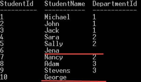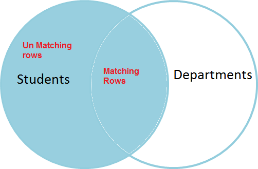 Note that any student name that has no matching department will have a "null" value for department name, because there is no matching value for it, and those values are the values in the un-matching rows.