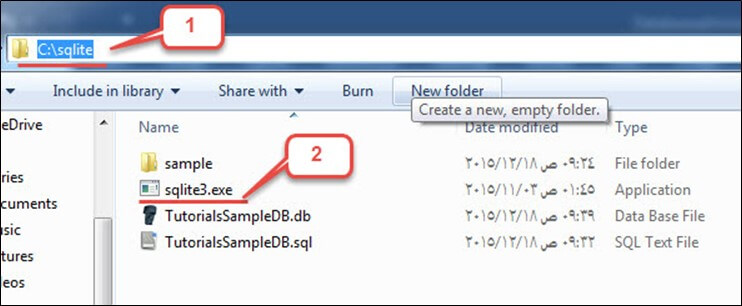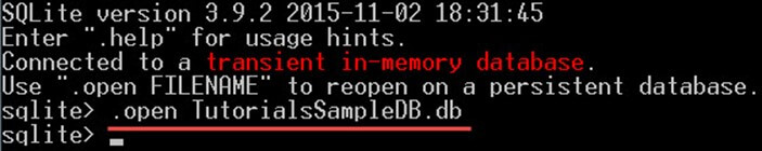 Step 2) Open the database "TutorialsSampleDB.db" by the following command: