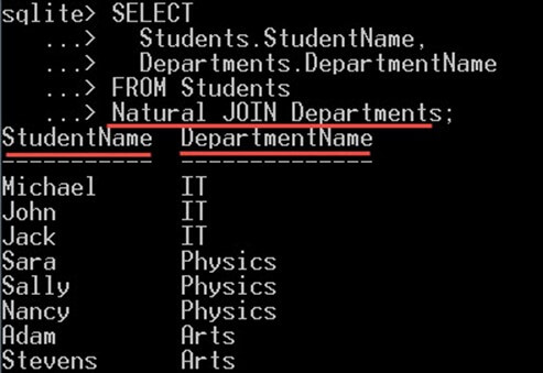 SELECT Students.StudentName, Departments.DepartmentName FROM Students Natural JOIN Departments;