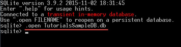 Step 2) Open the database "TutorialsSampleDB.db" by the following command: