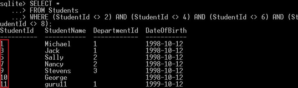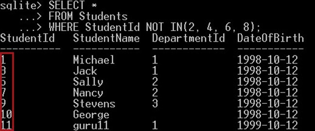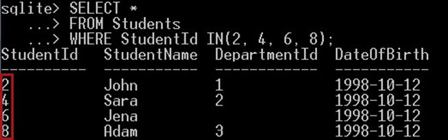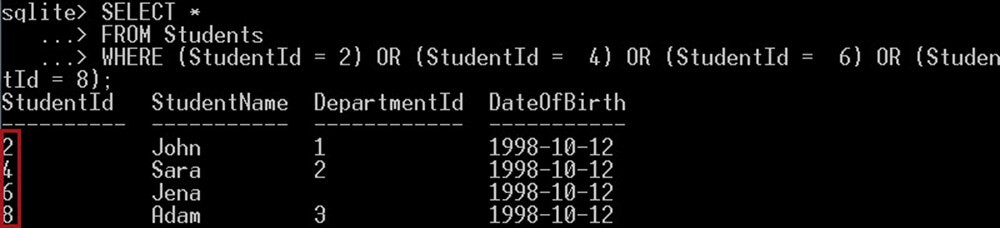 Note that, SQLite expresses the true value with 1 and the false value with 0.