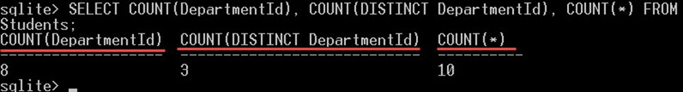 Note that, for all the following examples, you have to run the sqlite3.exe and open a connection to the sample database as flowing: