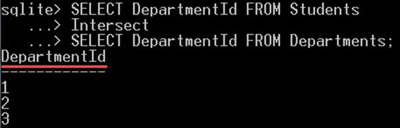 In the following query, we will select the DepartmentId values that exist in both the tables Students and Departments in the DepartmentId column: