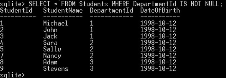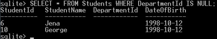 NULL values require a special handling in SQLite, we will see now how to handle the NULL values.