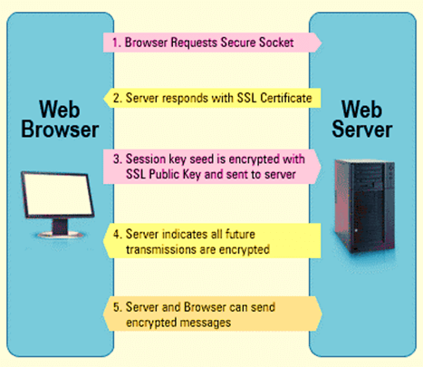 SSL works through a combination of programs and encryption/decryption routine that exist on the web server computer and web server browser.