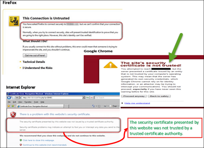 The types of error you likely to see due to certificate in different browsers may be somewhat like this
