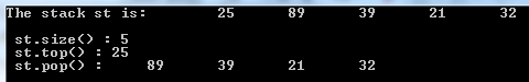 - Print the contents of the stack st1 on the console. The " " adds space between the stack elements when printing them on the console.