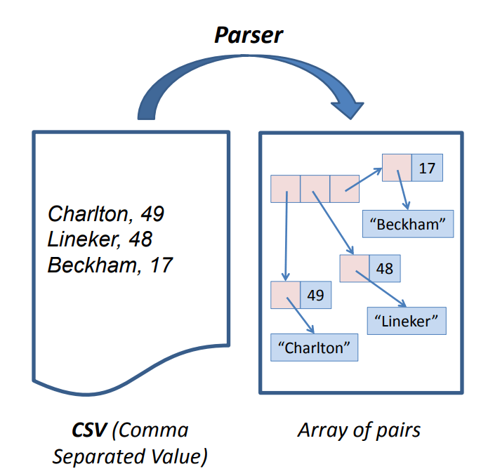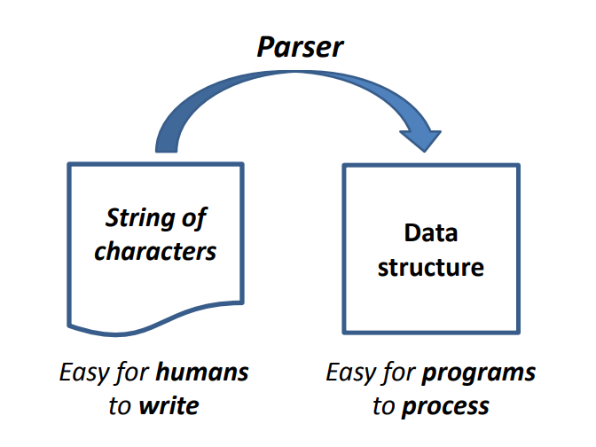 A parse also checks that the input string is well-formed, and if not, reject it.