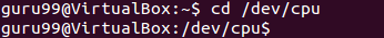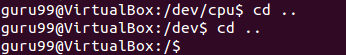 Here by using the 'cd ..' command, we have moved up one directory from '/dev/cpu' to '/dev'.