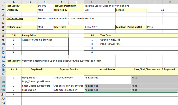 A TEST CASE is a set of actions executed to verify a particular feature or functionality of your software application. A Test Case contains test steps, test data, precondition, postcondition developed for specific test scenario to verify any requirement. The test case includes specific variables or conditions, using which a testing engineer can compare expected and actual results to determine whether a software product is functioning as per the requirements of the customer.