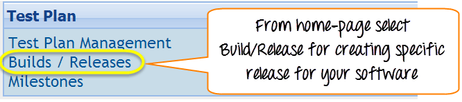 Step 1: Click on Builds/Releases under Test Plan from the home page