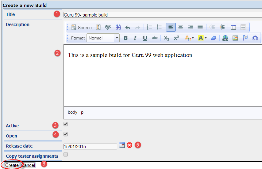 Step 2: In the next window, fill all necessary details for a software release and click on create to save your release