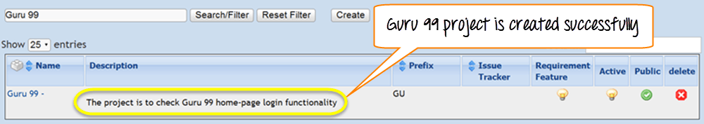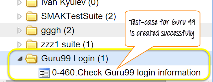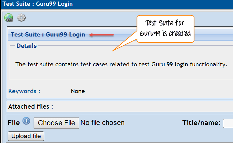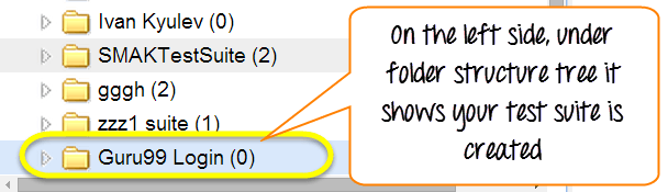 You can see the test suite for Guru 99 is created