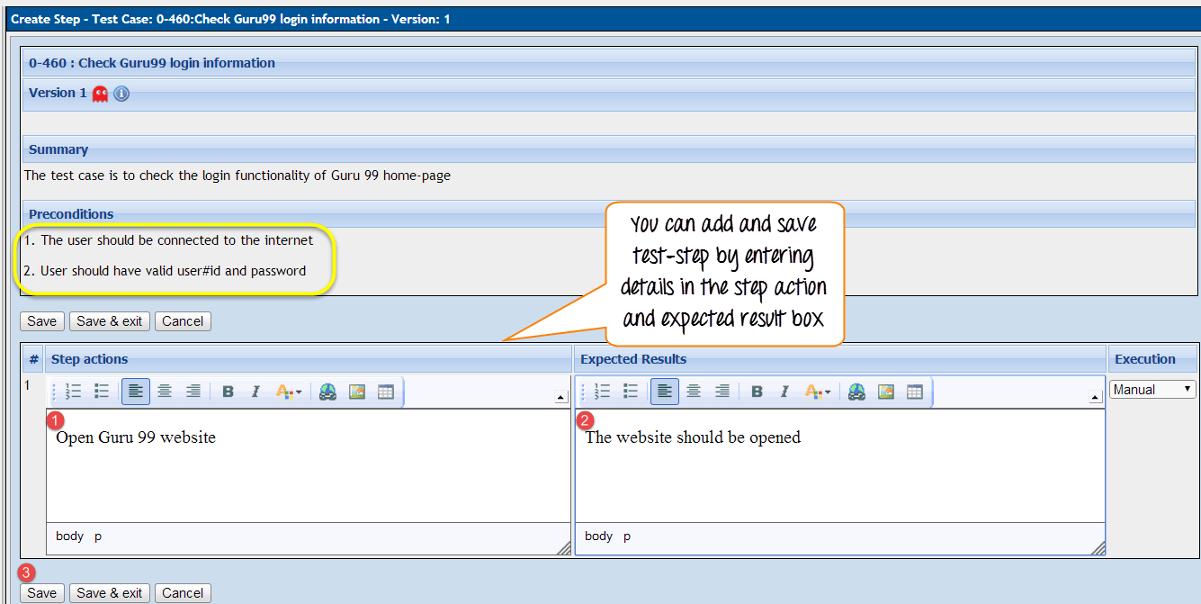Testcase holds a sequence of test steps to test a specific scenario with an expected result. Below steps will explain how to create a test-case along with test steps.