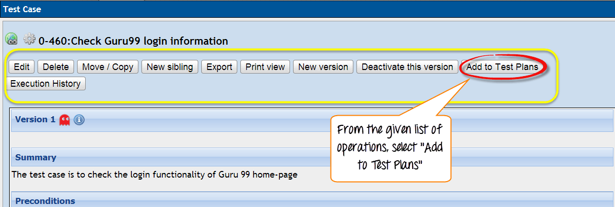 Step 2) Click on "Add to Test Plans"