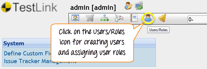 Step 1: From the Testlinks home-page, click on users/roles icon from the navigation bar