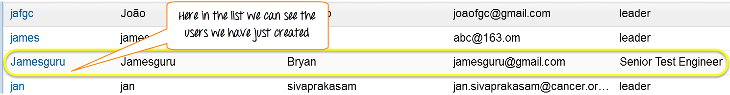 Here in the list, we can see the users have been created