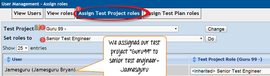 Step 4: Allotting test project role to the user,