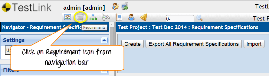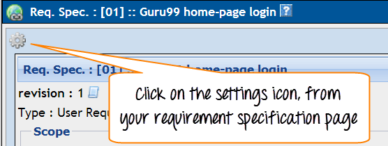 Step 5: Select the setting button from requirements specification home-page. It will open another window.