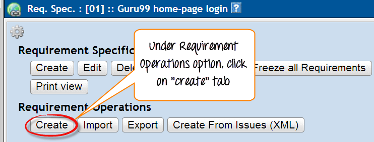 Step 5: Click "Create" tab under Requirement Operations.