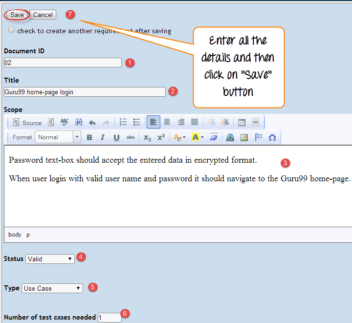Step 4: Enter the details in the test case specification page