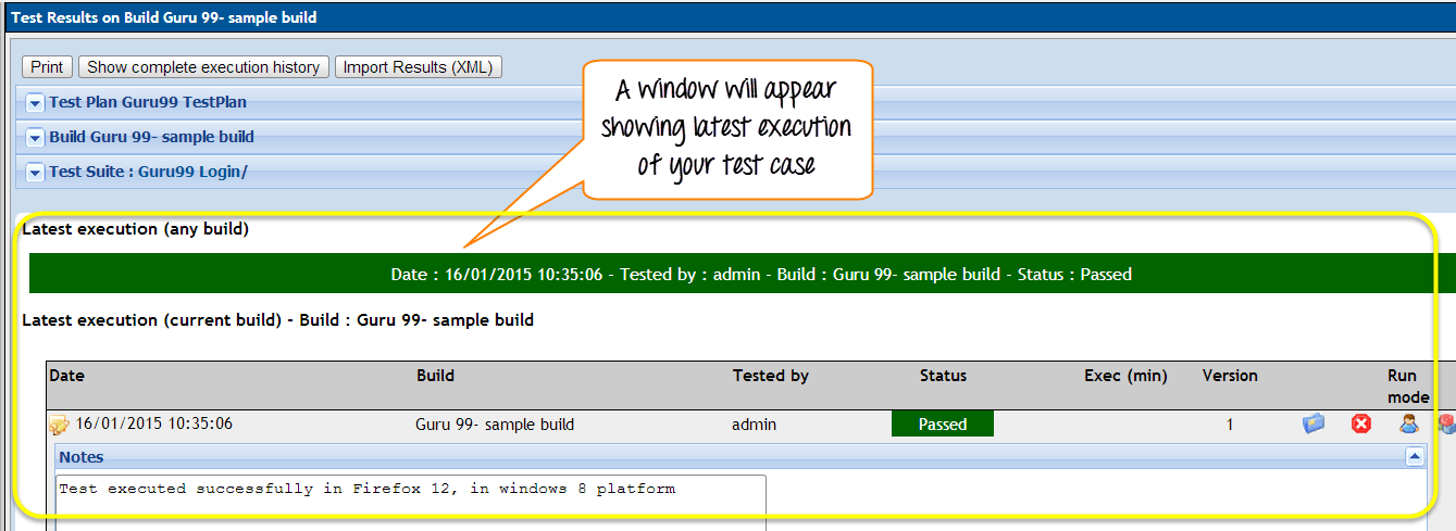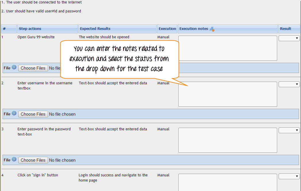 Step 5: On the same page, you have to fill similar detail about the execution of test-case. Fill the details, select the status and then click on "save execution".