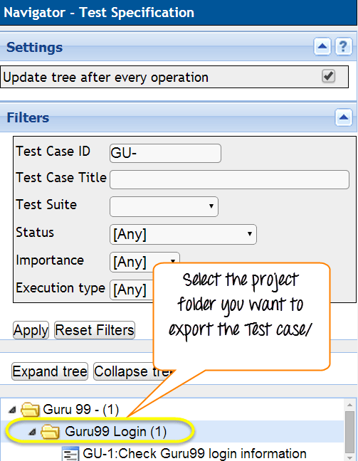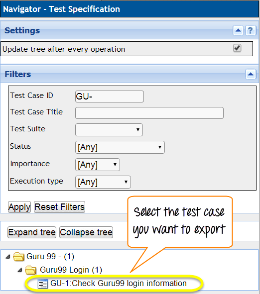 Step 1: Choose the test case you want to export in the Test specification page