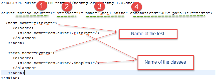 <suite thread-count="1" verbose="1" name="Gmail Suite" annotations="JDK" parallel="tests">