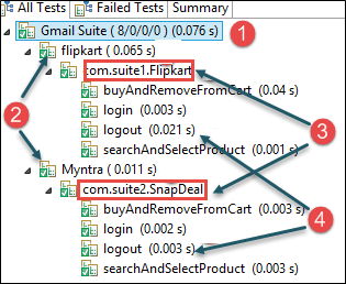 Here we will see how to run multiple classes (aka different suites) using TestNG.