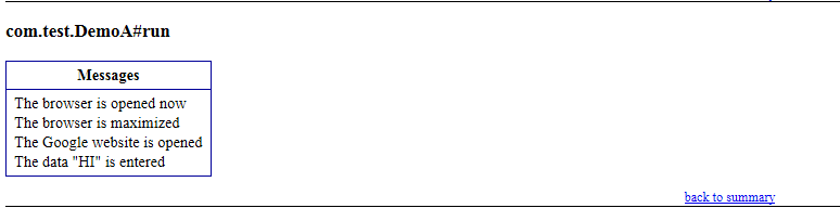 Along with these report generated methods, you can use object.properties file to store the system generated logs as well as user generated logs. But one of the simplest ways to store log information in testing is using Reporter Class.