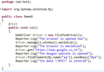 Reporter is a class present in TestNG. It provides 4 different methods to store log information they are: