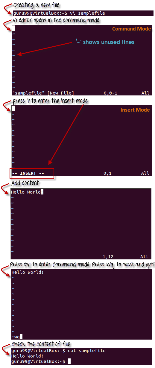 Note: You should be in the "command mode" to execute these commands. VI editor is case-sensitive so make sure you type the commands in the right letter-case.